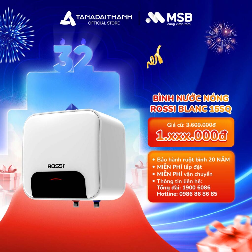 Bình nóng lạnh gián tiếp Rossi Blanc Vuông 15SQ ( dành cho CBNV ngân hàng MSB)