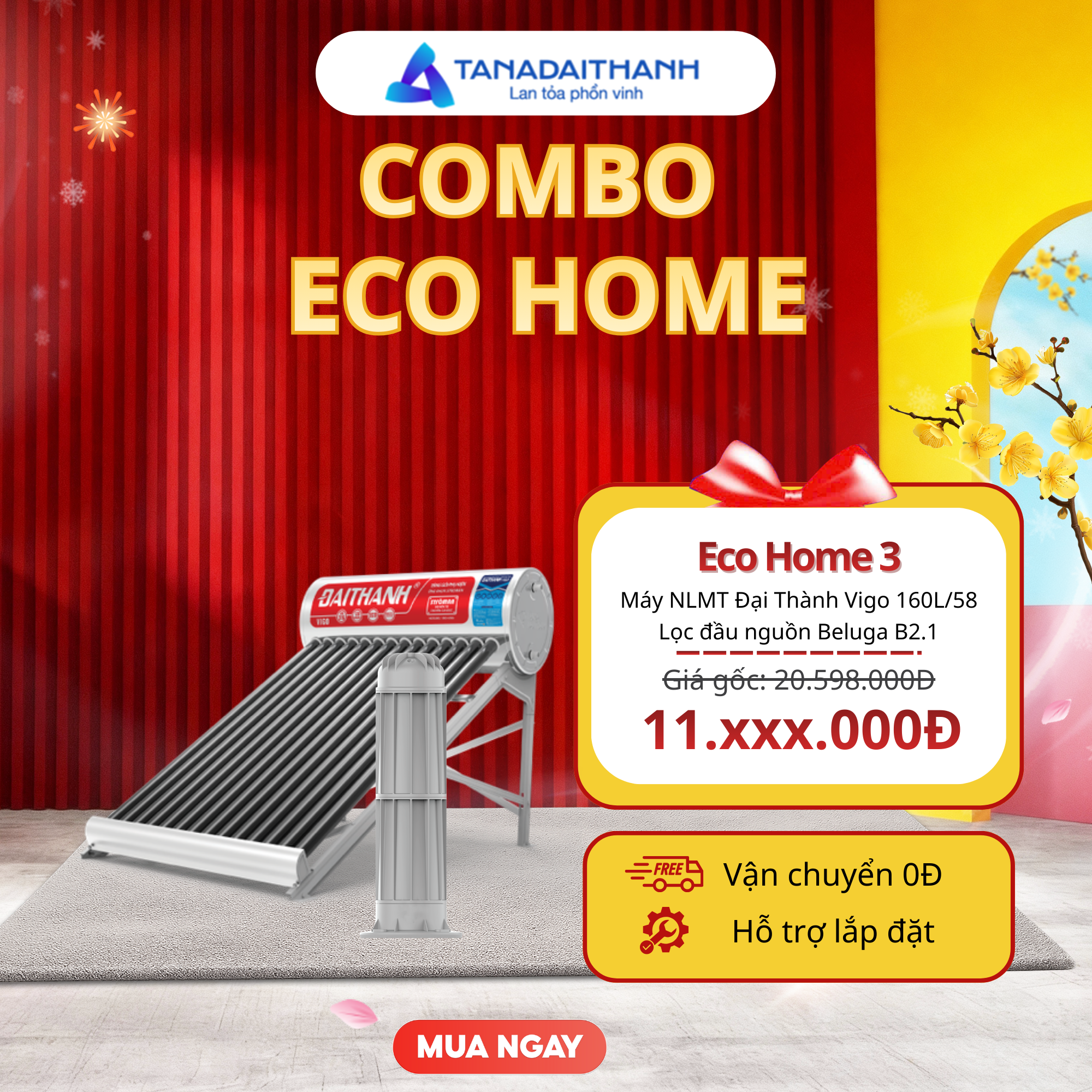 Combo Eco Home EH3 – Trữ nước an toàn, tắm mát thỏa thích, không lo điện. Sự kết hợp giữa MÁY NLMT ĐẠI THÀNH VIGO 160L/58 + Lọc đầu nguồn Beluga B2.1 mang đến giải pháp tiết kiệm điện và bảo vệ sức khỏe gia đình. Đây là lựa chọn phù hợp cho các hộ gia đình ở thành thị, vùng nông thôn hoặc khu vực có nguồn nước phèn, mặn.