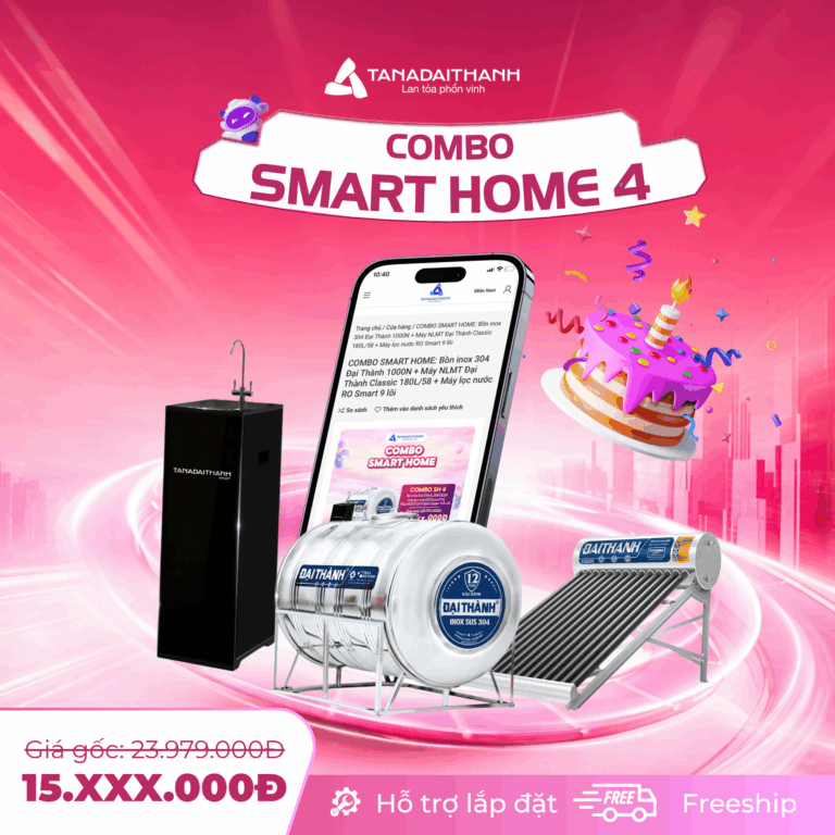 Bồn inox 304 Đại Thành 1000N + Máy NLMT Đại Thành Classic 180L/58 + MÁY LỌC R.O SMART 9 lõi |